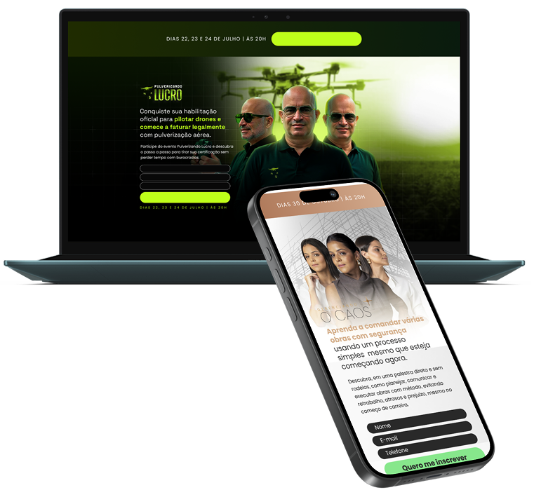 Páginas criadas para transformar visitantes em leads e leads em vendas reais.